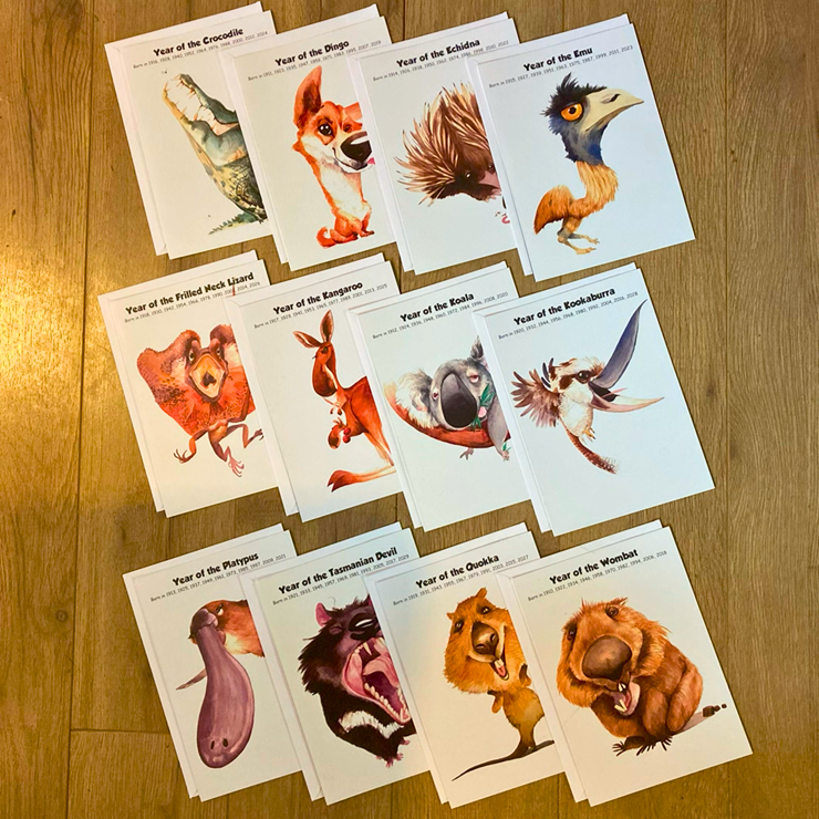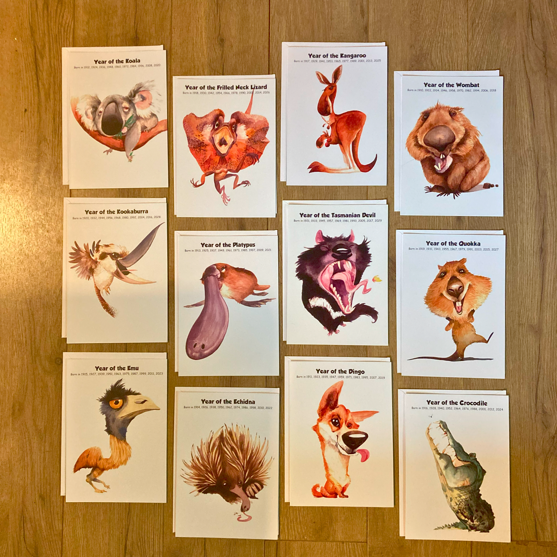 12 ICONIC OZTROLOGICAL AUSSIE ANIMAL GIFT CARDS MADE IN AUSTRALIA